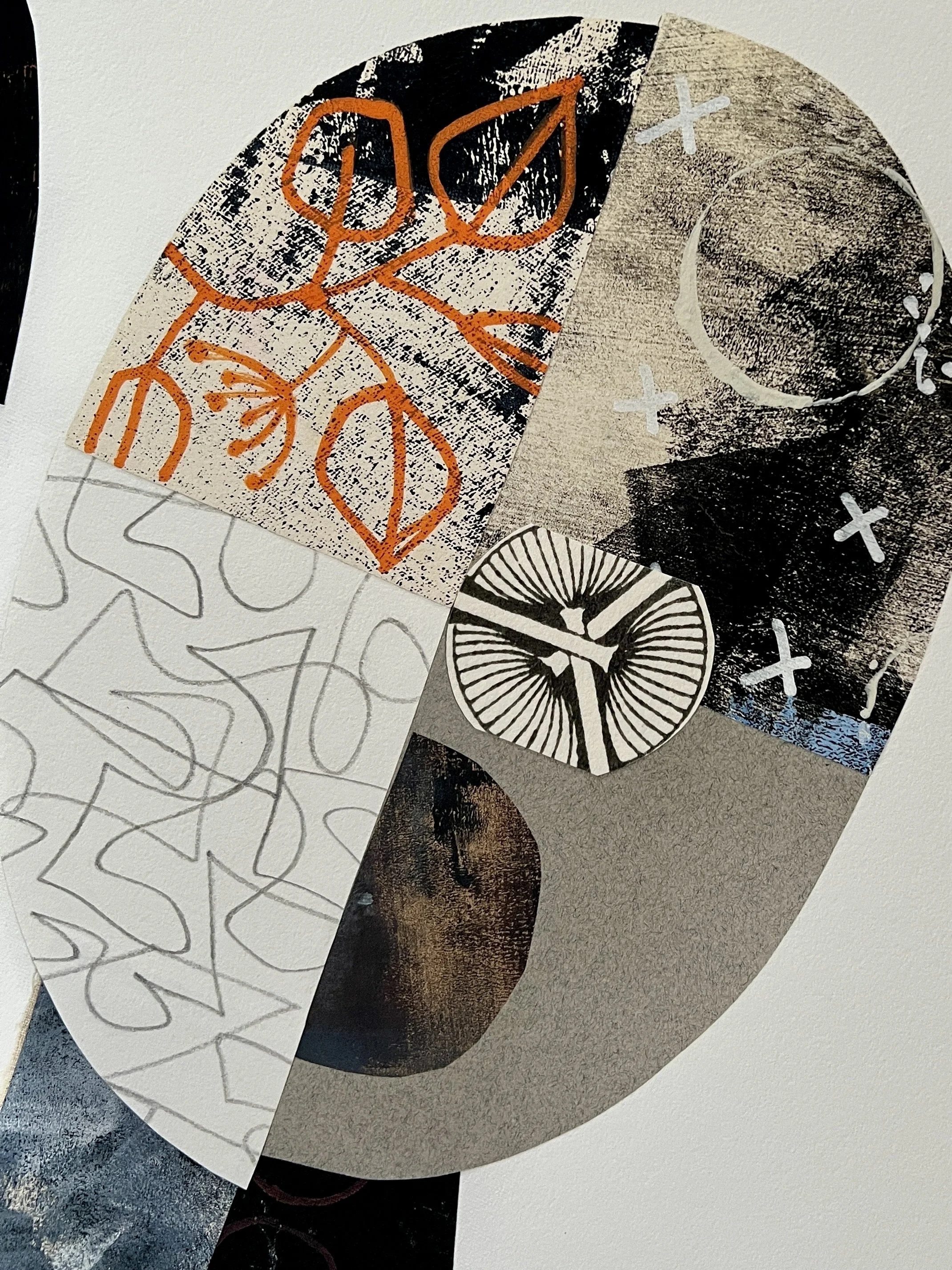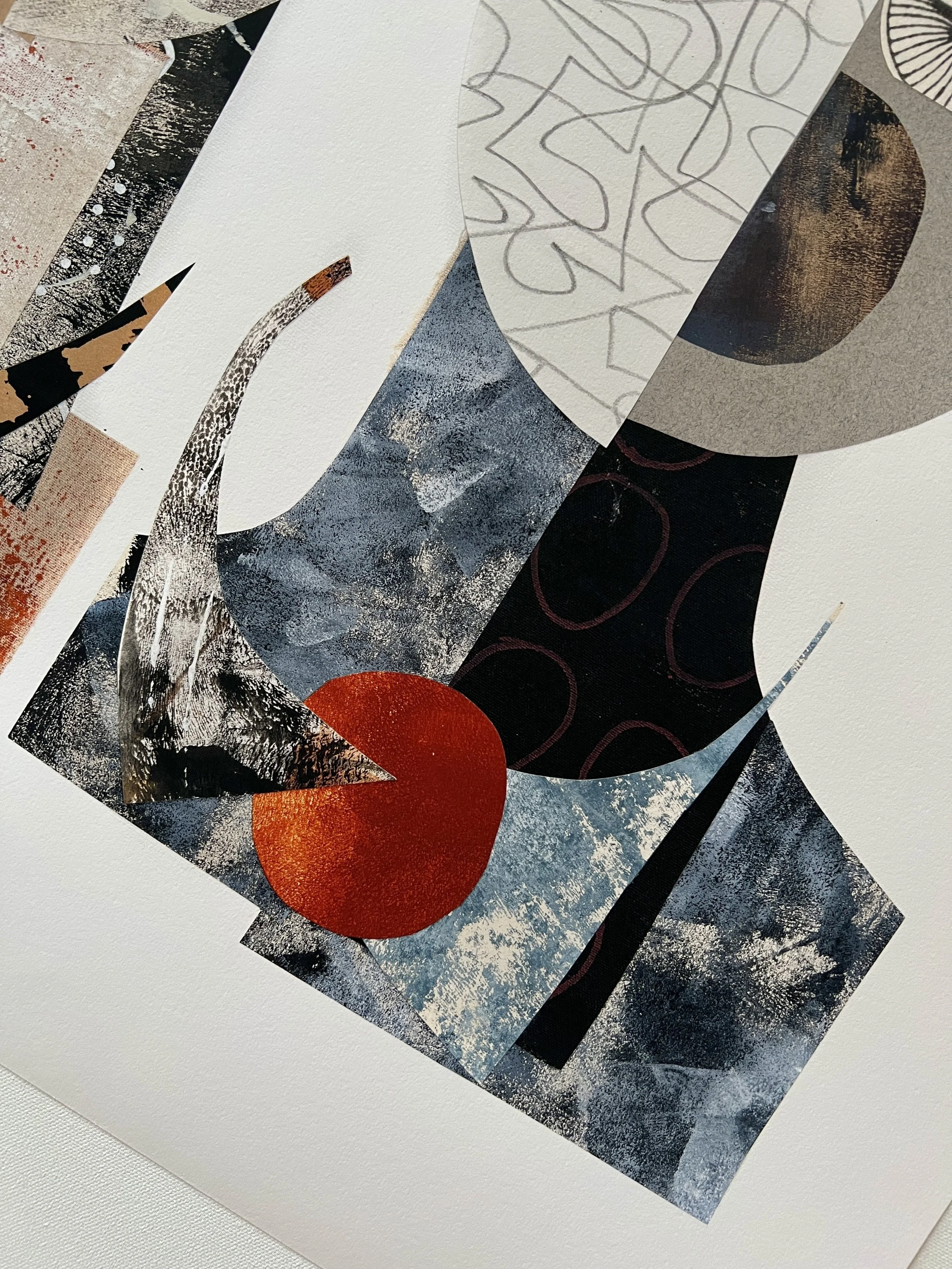 Ruby Red. Collaged heads and shoulders with bold neck ornaments